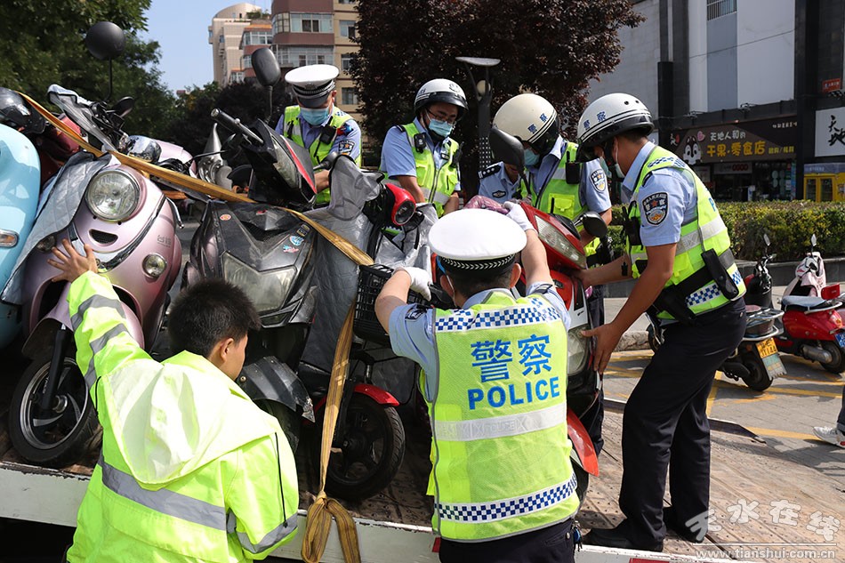 “根據(jù)創(chuàng)建文明城市工作要求,即日起對違規(guī)、亂停亂放的機動車輛進行依法處罰,對非機動車進行拖移,拖移后進行統(tǒng)一停放,集中依法按照道路交通法規(guī)進行處罰,對當事人進行批評教育。 ”秦州區(qū)公安分局城區(qū)交警大隊一中隊中隊長頡亮說。