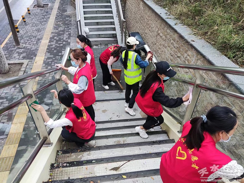 以志愿服務(wù)為“推手”,奏響創(chuàng)城“主題曲”。堅(jiān)持黨建帶創(chuàng)建,引導(dǎo)黨員入格,組織100余名在職黨員、500余名志愿者、環(huán)保志愿隊(duì)等多方力量,充分發(fā)揮基層黨支部戰(zhàn)斗堡壘和黨員先鋒模范作用,堅(jiān)持圍繞成功創(chuàng)建全國(guó)文明城市的目標(biāo),按照 “五好一高”標(biāo)準(zhǔn),制定時(shí)間表、任務(wù)書,強(qiáng)力推進(jìn),做到不放過一個(gè)死角,不遺漏任何細(xì)節(jié)。深入解放路等包抓街巷和環(huán)衛(wèi)處家屬樓等包抓小區(qū)扎實(shí)開展志愿服務(wù)活動(dòng)。清理人行道、衛(wèi)生死角、煙頭、磚頭、樹枝等垃圾雜物,清除城市“蜘蛛網(wǎng)”“牛皮癬”、小廣告400余處,同時(shí)督促沿街門店落實(shí)好門前“四包”責(zé)任制,不斷擦亮城市容顏。讓“志愿紅”和“環(huán)衛(wèi)橙”,成為一道亮眼的風(fēng)景線。