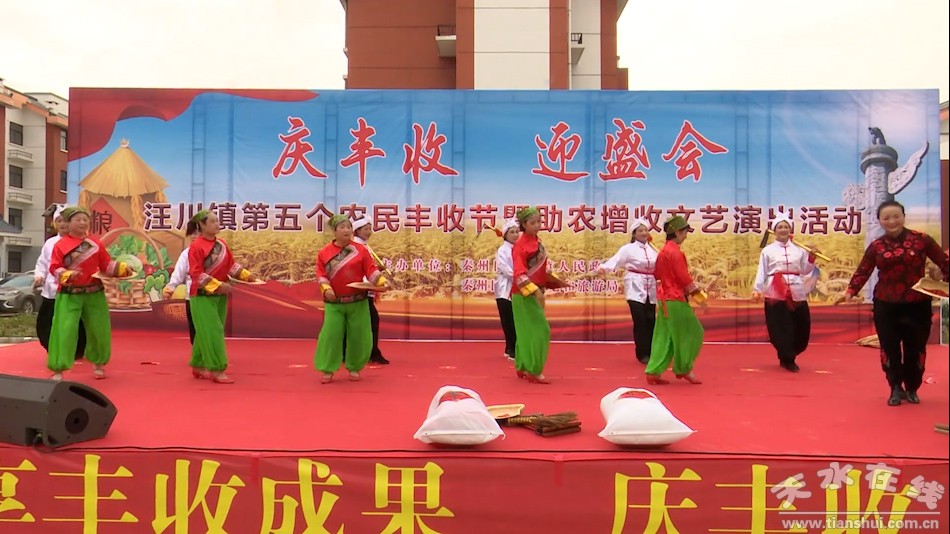 活動中,汪川鎮(zhèn)對種糧大戶、當(dāng)?shù)佚堫^企業(yè)進(jìn)行了表彰。農(nóng)特產(chǎn)品展區(qū)展出了蘋果、雜糧、土蜂蜜、薄皮核桃、手工藝品等,吸引了許多周邊村民選購。農(nóng)民朋友還表演了《我和我的祖國》《大豐收》《變臉》《讀中國》《二堂舍子》等精彩的文藝節(jié)目,表達(dá)豐收的喜悅心情。