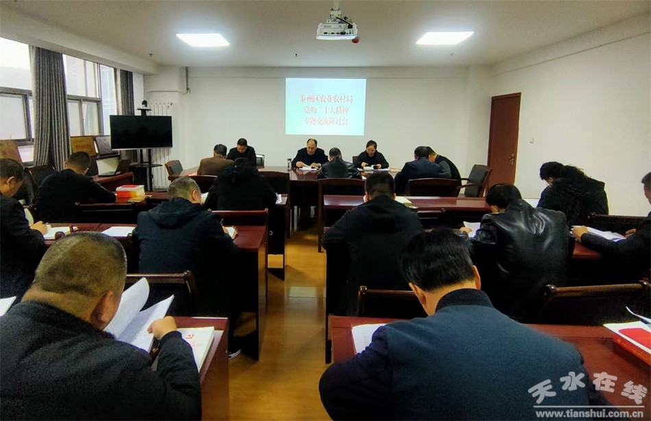 秦州區(qū)農(nóng)業(yè)農(nóng)村局召開黨的二十大精神專題交流研討會(huì)。會(huì)議要求,全局上下要通過一系列學(xué)習(xí)活動(dòng)讀原文、悟原理,迅速掀起學(xué)習(xí)貫徹黨的二十大精神熱潮,使廣大黨員干部群眾深刻領(lǐng)會(huì),準(zhǔn)確把握二十大的精神實(shí)質(zhì);要在學(xué)習(xí)研討中運(yùn)用好“學(xué)習(xí)強(qiáng)國”“甘肅黨建”、看秦州等學(xué)習(xí)平臺(tái),切實(shí)增強(qiáng)學(xué)習(xí)實(shí)效;局屬各單位要把學(xué)習(xí)貫徹黨的二十大精神與實(shí)際工作相結(jié)合,進(jìn)一步鞏固拓展脫貧攻堅(jiān)成果,推進(jìn)鄉(xiāng)村全面振興,落實(shí)好“疫情要防住、經(jīng)濟(jì)要穩(wěn)住、發(fā)展要安全”的重要要求,切實(shí)提高各項(xiàng)工作的效率和效果,加快推進(jìn)全區(qū)現(xiàn)代農(nóng)業(yè)高質(zhì)量發(fā)展。