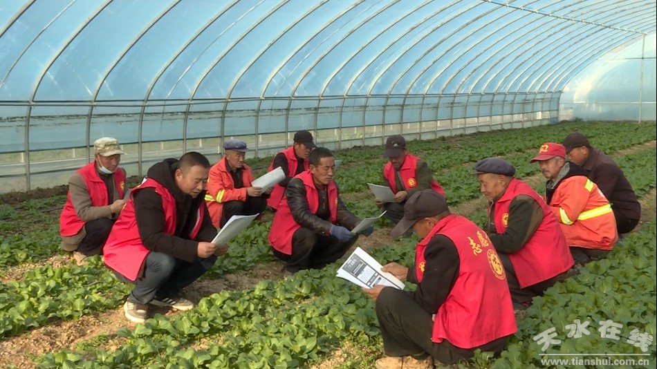 為了不誤農(nóng)時(shí),汪川鎮(zhèn)柏母村積極發(fā)揮基層黨組織的陣地作用,將黨的二十大精神宣傳帶到了蔬菜種植大棚里,用群眾聽得懂的語言,喜歡聽的話語方式,講好黨的二十大精神。