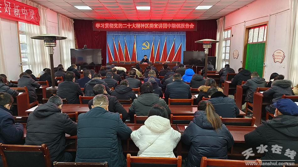 秦州區(qū)融媒體中心1月13日訊 (記者 康睿)1月12日,學(xué)習(xí)貫徹黨的二十大精神秦州區(qū)委宣講團(tuán)宣講報(bào)告會(huì)在中梁鎮(zhèn)舉行,區(qū)政協(xié)黨組書記、主席毛更生作宣講報(bào)告,區(qū)政府副區(qū)長惠斌主持報(bào)告會(huì)。