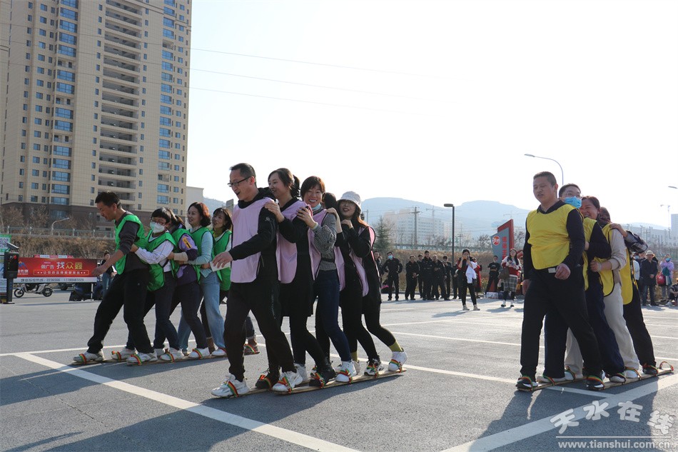 天水郡街道舉辦“做時代新女性 展巾幗新風(fēng)采”慶“三八”同舟共濟(jì)趣味運動會,設(shè)三人四足跑游戲、二人背氣球跑游戲、同舟共濟(jì)游戲、毛毛蟲拓展游戲、拔河游戲5個項目。此次趣味運動會讓職工們在運動中釋放了壓力,在輕松愉悅的氛圍中增進(jìn)了溝通交流。