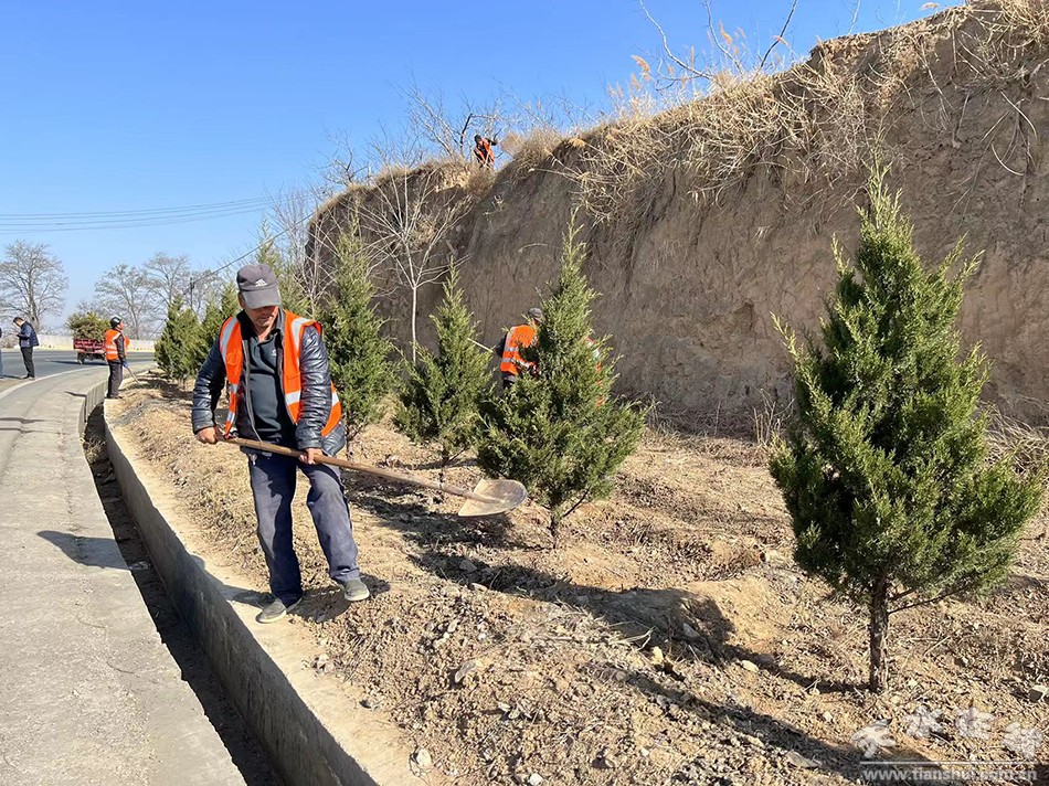 “今年以來,關子鎮(zhèn)早謀劃、早行動,對流水溝沿線10公里,礦運路沿線5公里、天松公路G310國道關子段7公里,所有苗木以及人居環(huán)境進行了徹底整治,共動用20余輛車、1000余人次。截至目前,已經(jīng)初步完成了挖坑、打點、規(guī)劃等工作!标P子鎮(zhèn)副鎮(zhèn)長堅大偉說。