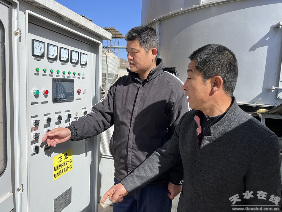 在皂郊鎮(zhèn)天水金發(fā)家禽有限公司,記者看到,一臺(tái)封閉式地上發(fā)酵設(shè)備已經(jīng)安裝完畢,合作社負(fù)責(zé)人金安國(guó)和調(diào)試工程師正在對(duì)新設(shè)備進(jìn)行調(diào)試。