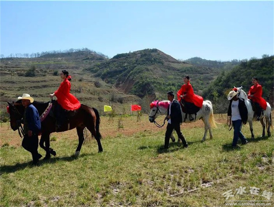 4.“秦人故里 策馬揚(yáng)鞭”騎行賞園活動(dòng)(4月17日-4月18日)騎馬賞園團(tuán)隊(duì),供前來(lái)賞花觀園的游客騎行打卡。