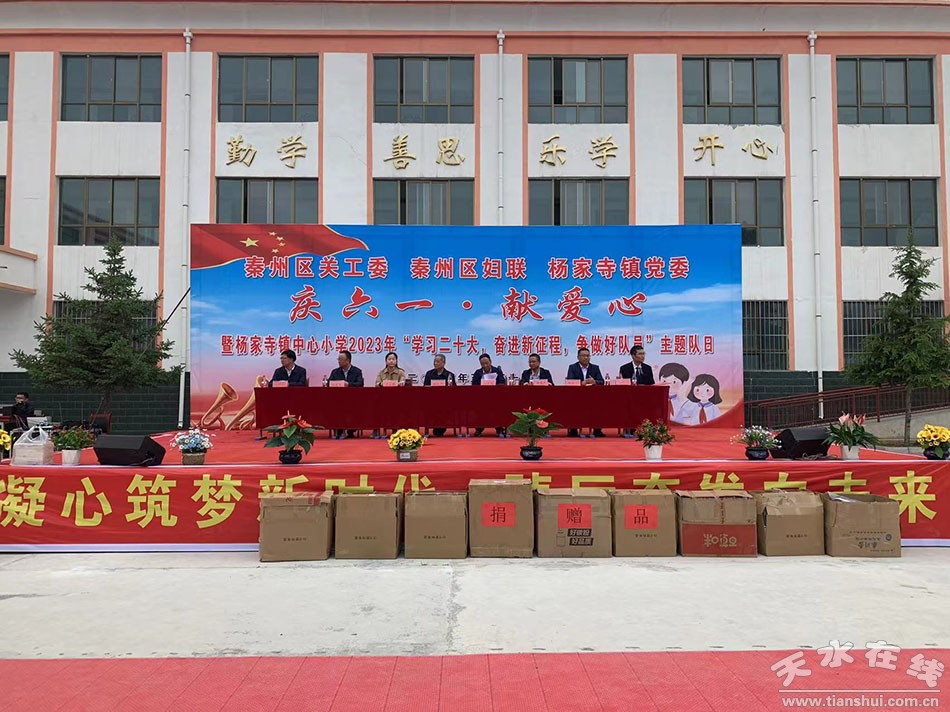 秦州區(qū)融媒體中心5月31日訊(記者 李欣)5月30日,秦州區(qū)關(guān)工委、秦州區(qū)婦聯(lián)、楊家寺鎮(zhèn)黨委“慶六一·獻(xiàn)愛心”暨楊家寺鎮(zhèn)中心小學(xué)2023年“學(xué)習(xí)二十大,奮進(jìn)新征程,爭做好隊(duì)員”主題活動(dòng)在楊家寺鎮(zhèn)中心小學(xué)舉行。秦州區(qū)人大常委會(huì)原主任、區(qū)關(guān)工委常務(wù)副主任楊虎林,區(qū)人大常委會(huì)原副主任、區(qū)關(guān)工委副主任劉懷順參加活動(dòng)。