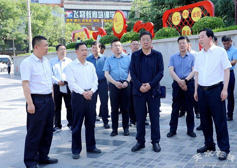 王東紅、孟曉龍一行先后來到天平、天定、天麥高速出入口及龍城廣場、伏羲廣場、天水賓館等地,詳細(xì)了解了重點(diǎn)路段環(huán)境衛(wèi)生治理、綠化美化亮化、氛圍營造等工作情況,并就存在的問題提出具體整改要求。