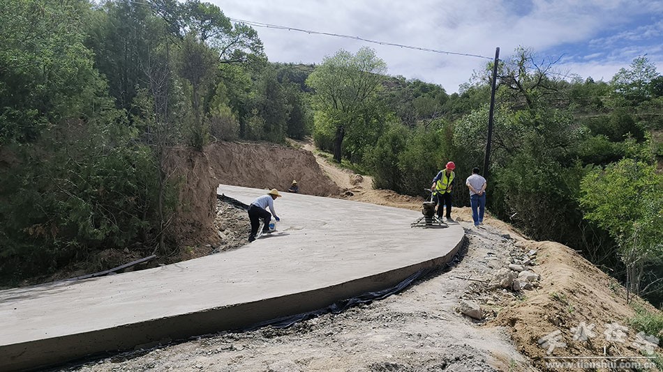 藉口鎮(zhèn)五十鋪村至灣合道路硬化工程是今年秦州區(qū)省列為民辦實事項目之一,規(guī)劃建設(shè)里程4.625公里。在施工現(xiàn)場,工人們利用多種工程機械,正在進行路面澆筑、平整作業(yè)。據(jù)項目負責(zé)人介紹,該工程即將完工,沿途群眾將告別“晴天一身土,雨天一身泥”的出行歷史。