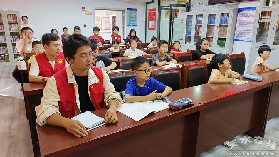 在綠色市場社區(qū),大學(xué)生志愿者化身“老師”,有的在耐心細(xì)致地輔導(dǎo)社區(qū)的孩子們完成暑假作業(yè),有的組織孩子們觀看愛國主義教育影片,對他們進(jìn)行愛國主義教育,有的則和孩子們一起下棋、跳繩、踢毽子,玩得不亦樂乎。