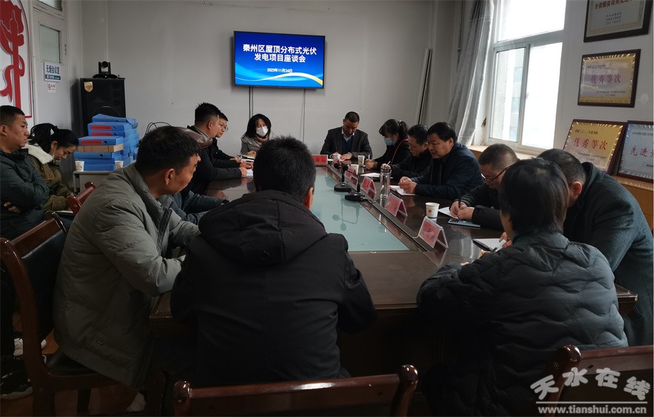 11月24日,秦州區(qū)組織召開屋頂分布式光伏發(fā)電項目座談會議。區(qū)稅務(wù)局、區(qū)統(tǒng)計局、區(qū)招商局、區(qū)市場監(jiān)管局、區(qū)供電公司及多家企業(yè)代表參加會議。