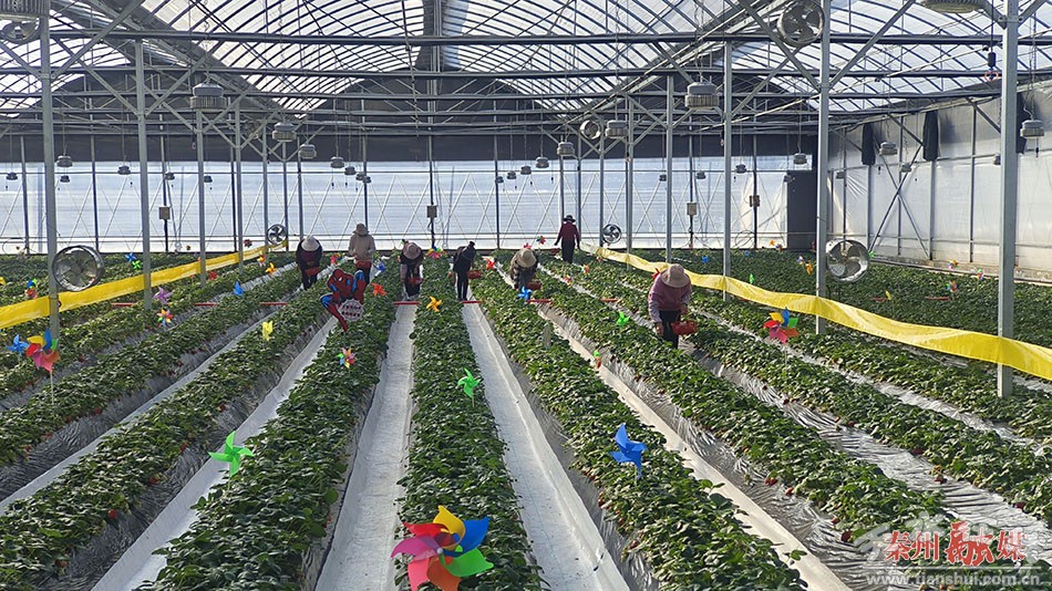 今年是草莓小鎮(zhèn)投產(chǎn)的第三年。為了提高草莓品質(zhì)和產(chǎn)量,他們通過配方施肥、高溫捂棚滅菌、添加雞糞、黃豆肥、油渣等有機質(zhì)肥料,對草莓種植區(qū)域土壤進行了徹底改良,為草莓提供了必需的微量元素,同時,也增強了草莓生長期間的抗病蟲害能力。