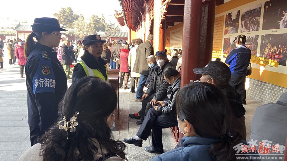 “對(duì)門店的規(guī)范經(jīng)營以及在廣場(chǎng)休閑娛樂時(shí),使用大功率音箱等不文明行為進(jìn)行勸導(dǎo)和阻止。其次,就是對(duì)比較松動(dòng)的地磚、地板進(jìn)行重新的維修維護(hù),為我們的伏羲城創(chuàng)造一個(gè)文明、和諧、干凈、舒適的旅游環(huán)境。”伏羲城步行街管理辦公室分隊(duì)長孫麗娟說。