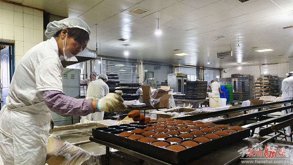 在天水隴香食品有限公司食品生產(chǎn)車間內(nèi),記者看到,工人們正在緊張忙碌著。據(jù)了解,該車間共有工人17名,主要負(fù)責(zé)生產(chǎn)雞蛋糕、老面包、蛋黃酥等產(chǎn)品,產(chǎn)品采用傳統(tǒng)工藝,均為純手工制作完成。
