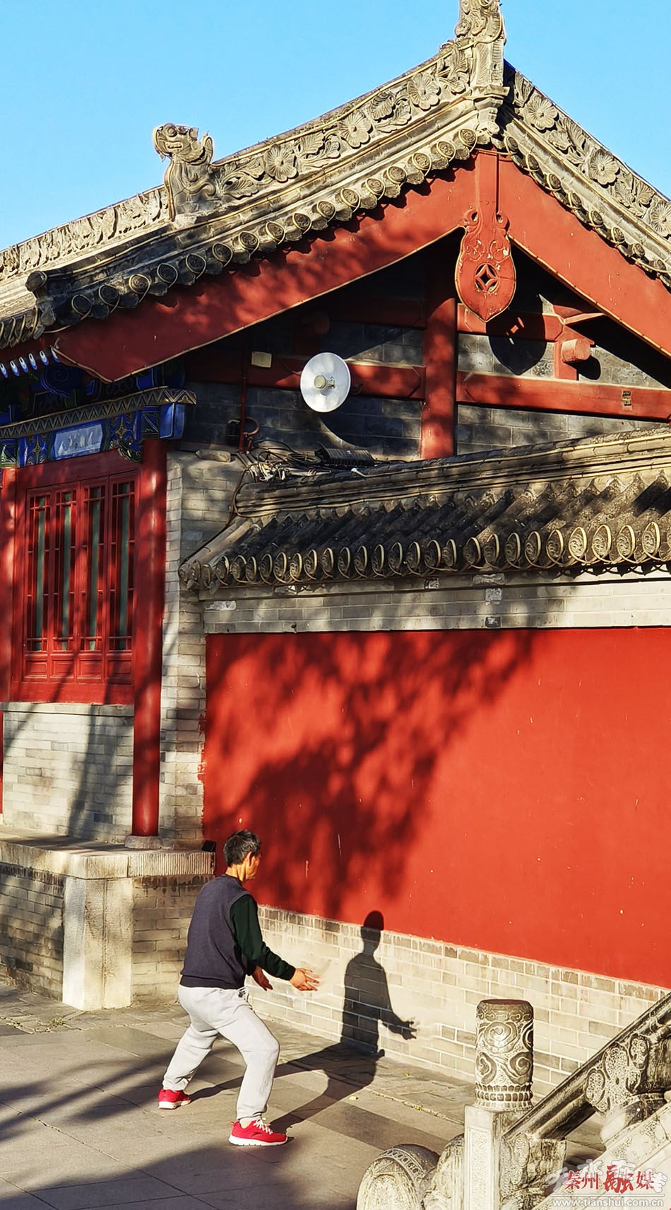 倘若走馬在秦州的早晨,你能看見,到處是與古韻同氣連枝的人們,在伏羲廟廣場(chǎng)耍鞭桿舞龍旗,在南郭寺山上登山跑步,在玉泉觀舞劍打太極,在西關(guān)古城里跳起廣場(chǎng)舞。在晨光的喚醒里,人們變成悠然古韻里的一份子,骨子里帶上了那種坐擁歷史、縱覽古今的自由與自信。