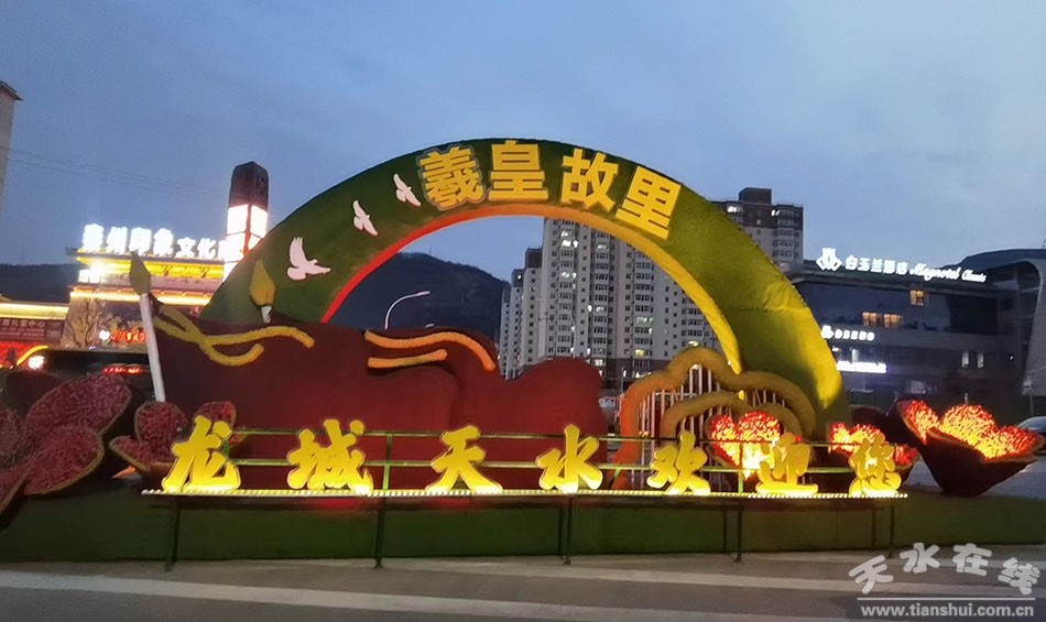 在天水西高速公路出入口,一處以“年年如意 歲歲平安”為主題的立體綠雕栩栩如生,“歡迎您回家過(guò)年”的標(biāo)語(yǔ)親切友好,為返鄉(xiāng)“游子”們?cè)鎏砹藵鉂獾男腋8泻蜌w屬感。