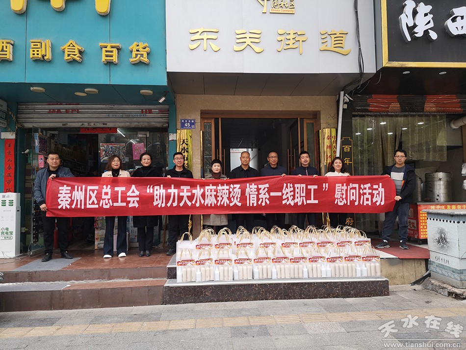 秦州區(qū)融媒體中心4月7日訊 “一碗麻辣燙、火遍一座城”,自3月以來(lái),“天水麻辣燙”火爆出圈,爆點(diǎn)不斷,全區(qū)廣大職工群眾凝心聚力、同心同德,將市、區(qū)“一碗麻辣燙推動(dòng)天水大發(fā)展”的會(huì)議精神進(jìn)一步推向縱深。為助力天水麻辣燙,服務(wù)全區(qū)經(jīng)濟(jì)社會(huì)高質(zhì)量發(fā)展大局貢獻(xiàn)力量,4月7日,秦州區(qū)總工會(huì)積極開(kāi)展“助力天水麻辣燙·情系一線職工”慰問(wèn)活動(dòng)。