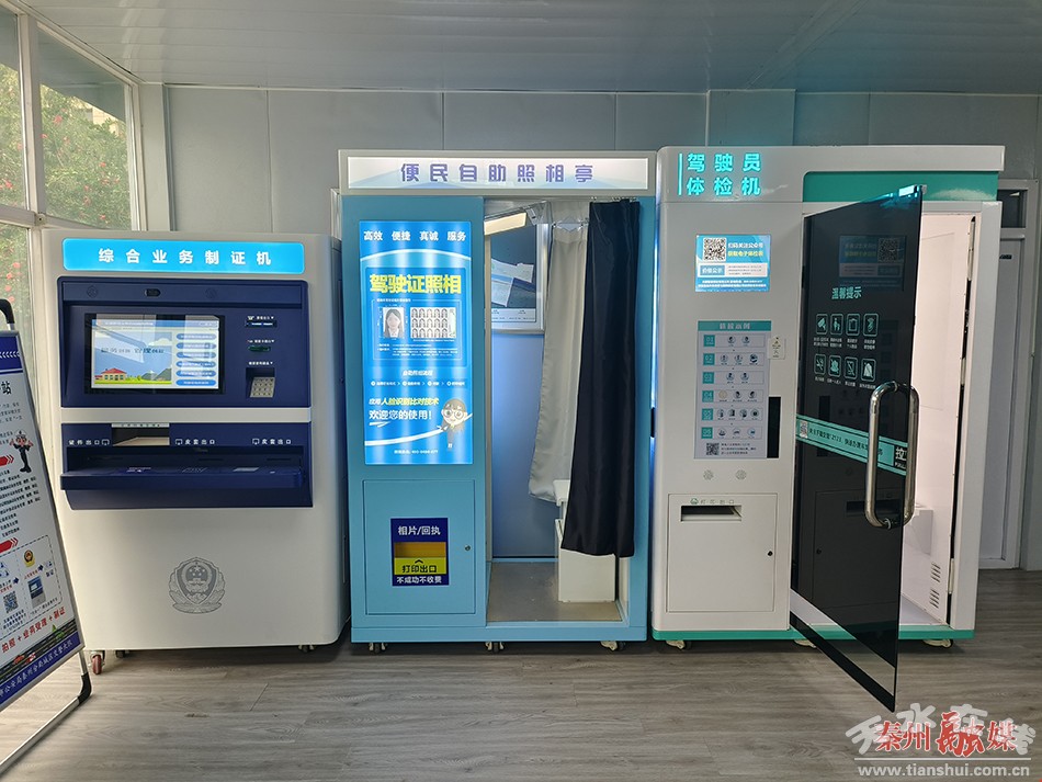 24小時“自助車管所”位于七里墩人社大樓東側(cè),天河廣場警務(wù)站內(nèi),走進(jìn)“自助車管服務(wù)所”,記者看到,這里設(shè)置了駕駛員體檢機(jī)、便民自助照相亭、綜合業(yè)務(wù)制證機(jī),可辦理駕駛證期滿換證、遺失補(bǔ)證、損毀補(bǔ)證、變更駕駛證聯(lián)系方式等多項業(yè)務(wù)。