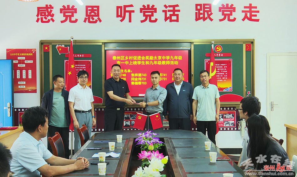 活動(dòng)中,促進(jìn)會(huì)成員為太京中學(xué)考上天水一中的學(xué)生閆涵、董翰澤、郭福蓉、陳欣怡各發(fā)放獎(jiǎng)金500元,激勵(lì)他們發(fā)奮圖強(qiáng),再創(chuàng)佳績(jī)。