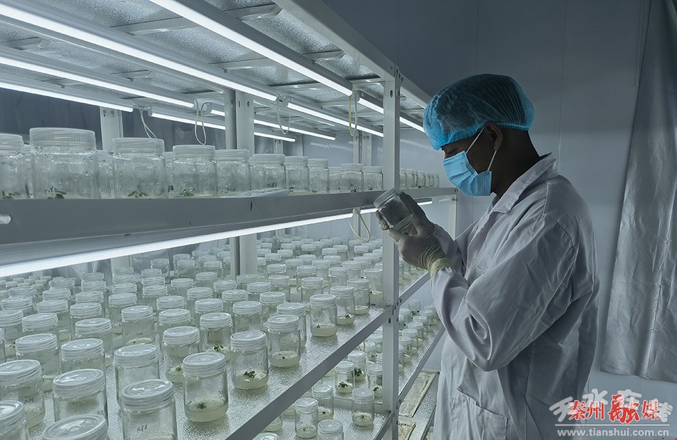 “我省在草莓組培繁育屬于空白,為了彌補(bǔ)這一空白,更新省內(nèi)草莓種植苗木生產(chǎn)代數(shù),提高草莓生產(chǎn)質(zhì)量和產(chǎn)量,增強(qiáng)苗木抗病蟲害能力,草莓小鎮(zhèn)在2023年引進(jìn)專業(yè)隊(duì)伍和設(shè)備,組建天水市內(nèi)第一個(gè)草莓組培繁育工廠,并于今年實(shí)現(xiàn)投產(chǎn)。”天水鎮(zhèn)草莓小鎮(zhèn)園區(qū)負(fù)責(zé)人張文海說(shuō)。