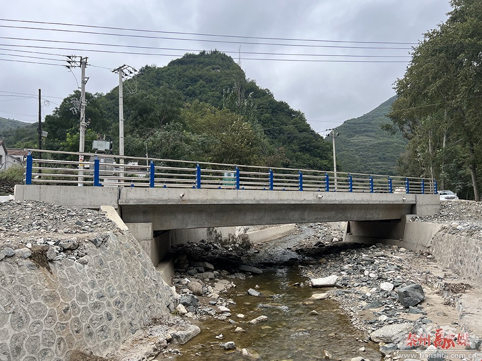 關(guān)子鎮(zhèn)高爐子村村委會(huì)門口兩條河流匯集,由于河道坡降較陡,水流對(duì)河岸沖刷劇烈,為提高本河段防洪能力,確保群眾生命財(cái)產(chǎn)安全,秦州關(guān)子至甘谷古坡道路建設(shè)項(xiàng)目在保留原有小橋的基礎(chǔ)上,修建了寬七米長(zhǎng)七米的箱涵,有效解決防洪問(wèn)題。