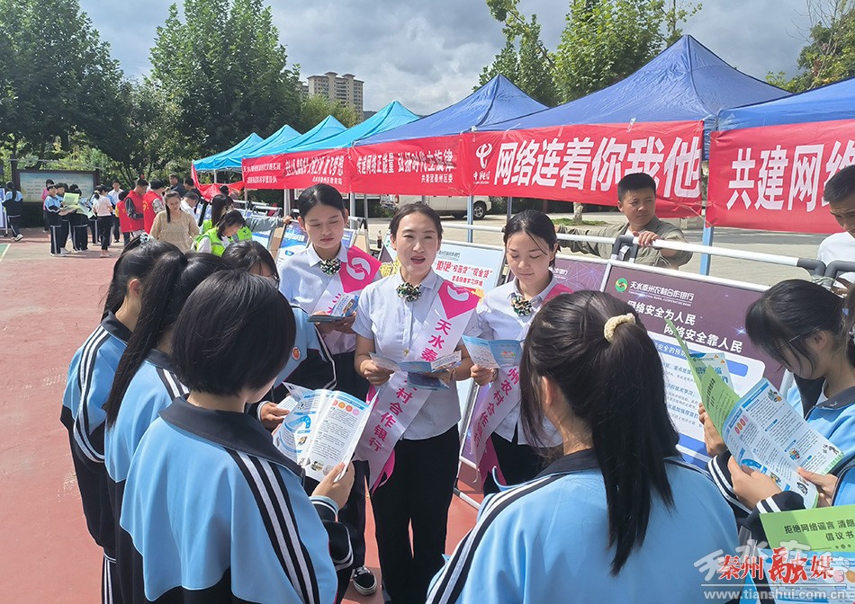 活動現(xiàn)場,區(qū)委宣傳部、區(qū)委網(wǎng)信辦、秦州公安分局、區(qū)教育局、團區(qū)委等部門單位,通過擺放展板、懸掛橫幅、發(fā)放宣傳彩頁等形式進行集中宣傳,向廣大師生普及《網(wǎng)絡安全法》《個人信息保護法》等法律法規(guī),展示近年來各類常見電信網(wǎng)絡詐騙類型、作案手段及識別、防范技巧。秦州公安分局還現(xiàn)場開展了網(wǎng)絡安全教育培訓講座,結合涉網(wǎng)犯罪案例,講解了常見校園網(wǎng)絡問題、網(wǎng)絡安全攻略清單、保護個人信息以及預防網(wǎng)絡暴力等內容,進一步增強師生的網(wǎng)絡安全防范意識。