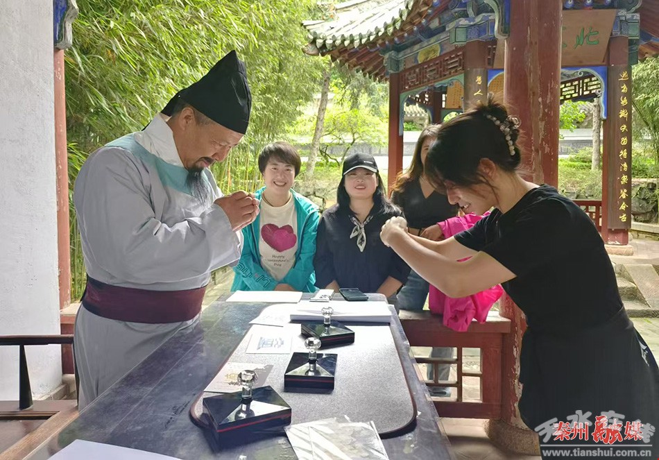 “今天來參觀伏羲廟,還有博物館,感覺到伏羲文化源遠流長,我們還去看了關(guān)于伏羲的電影,還有伏羲研究八卦這些方面,讓我感覺到中華文化的博大精深,讓我學(xué)習(xí)到了很多知識。”臨夏州游客韓姣姣說。