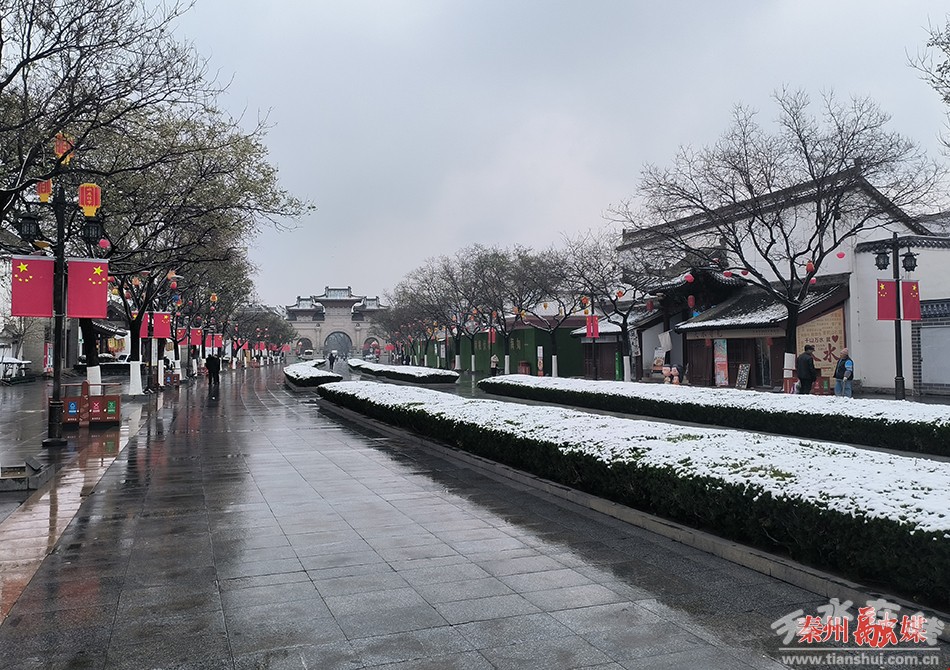 落雪如同一位技藝高超的化妝師,讓秦州大地冬禧流韻,氣象一新。記者在秦州城區(qū)看到,建筑屋頂、道路兩旁、花草樹木都落下了積雪,大街小巷洋溢著濃濃冬意,為街道平添了幾番韻味。