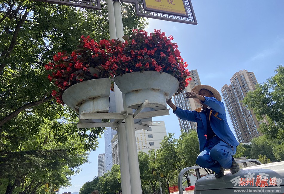 “鮮花擺放的品種主要有海棠、一串紅、彩葉草、雞冠花等,擺放的路段主要有龍城廣場、建設(shè)路、伏羲路等城區(qū)主要路段。橋梁標語安裝在城區(qū)的主要路口、主要出入口和龍城廣場的人行天橋。除此以外,我們還對現(xiàn)有的亮化設(shè)施、路燈、燈箱、國旗進行了維修和檢修,對城區(qū)的綠化帶進行了修剪。”秦州區(qū)建設(shè)局建設(shè)股副股長任靚說。