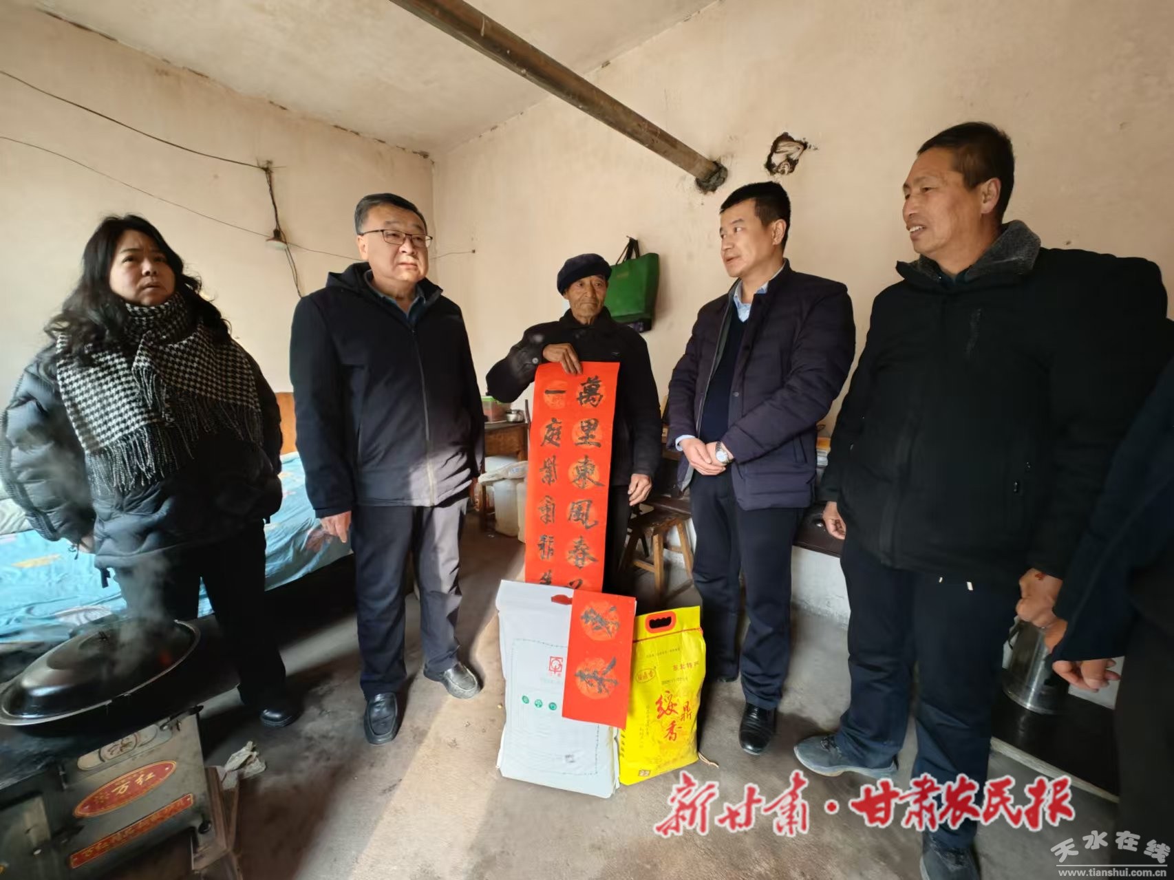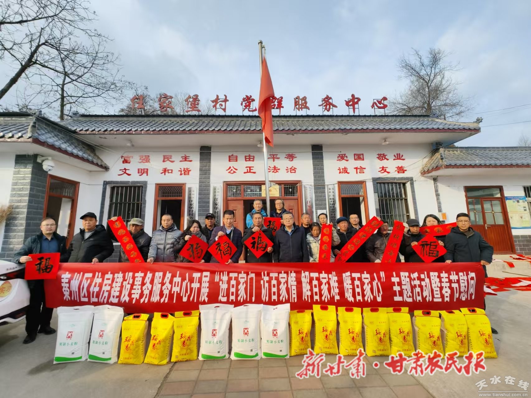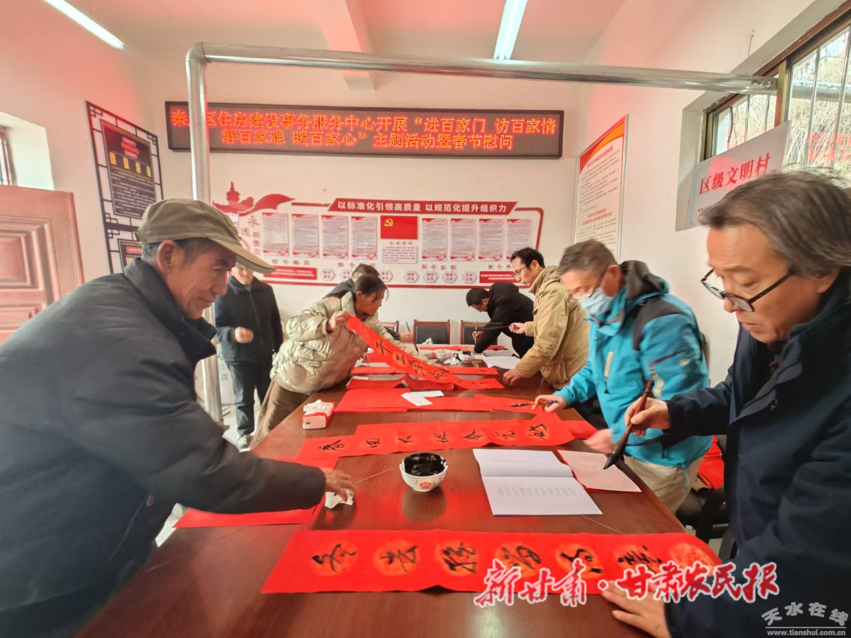 春節(jié)將至,年味漸濃。為弘揚優(yōu)秀傳統(tǒng)文化,豐富群眾文化生活,營造熱鬧喜慶的節(jié)日氛圍,秦州區(qū)住房建設(shè)事務(wù)服務(wù)中心深入幫扶村,開展“進(jìn)百家門、訪百家情、解百家難、暖百家心”為主題的“迎新春,送春聯(lián)”暨節(jié)前慰問活動。