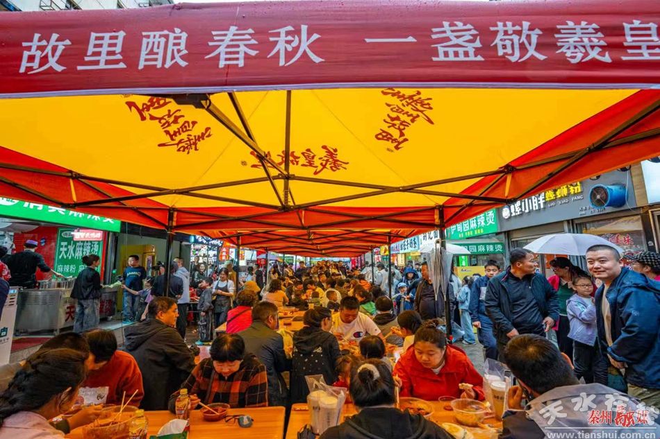 逛天水古跡,品特色美食。走進大眾路四合院,麻辣燙的香味在雨中彌漫,慕名而來的外地游客擠滿院落,等待品嘗天水麻辣燙的人排起了長龍,煙火氣十足。