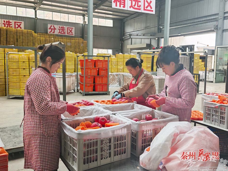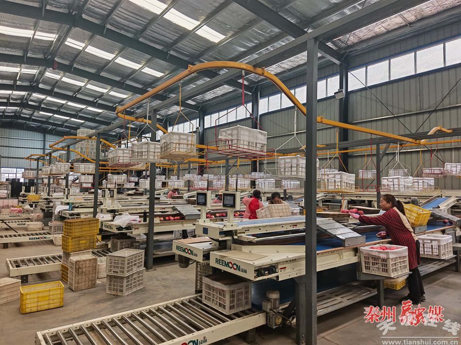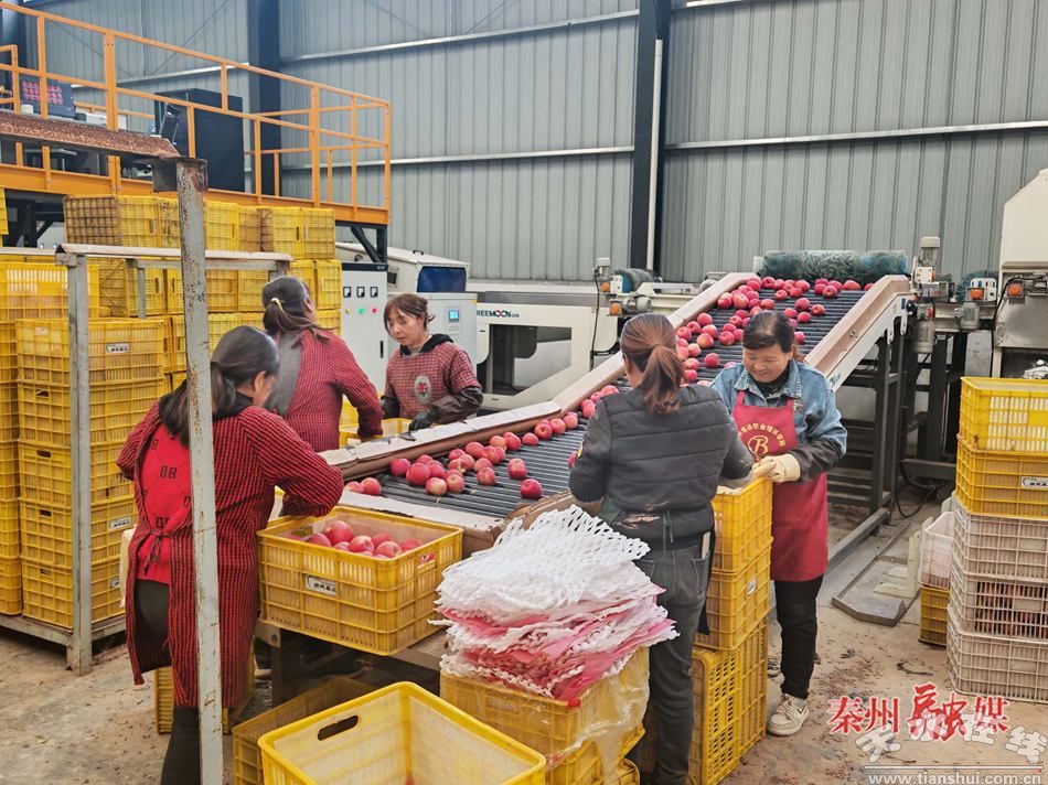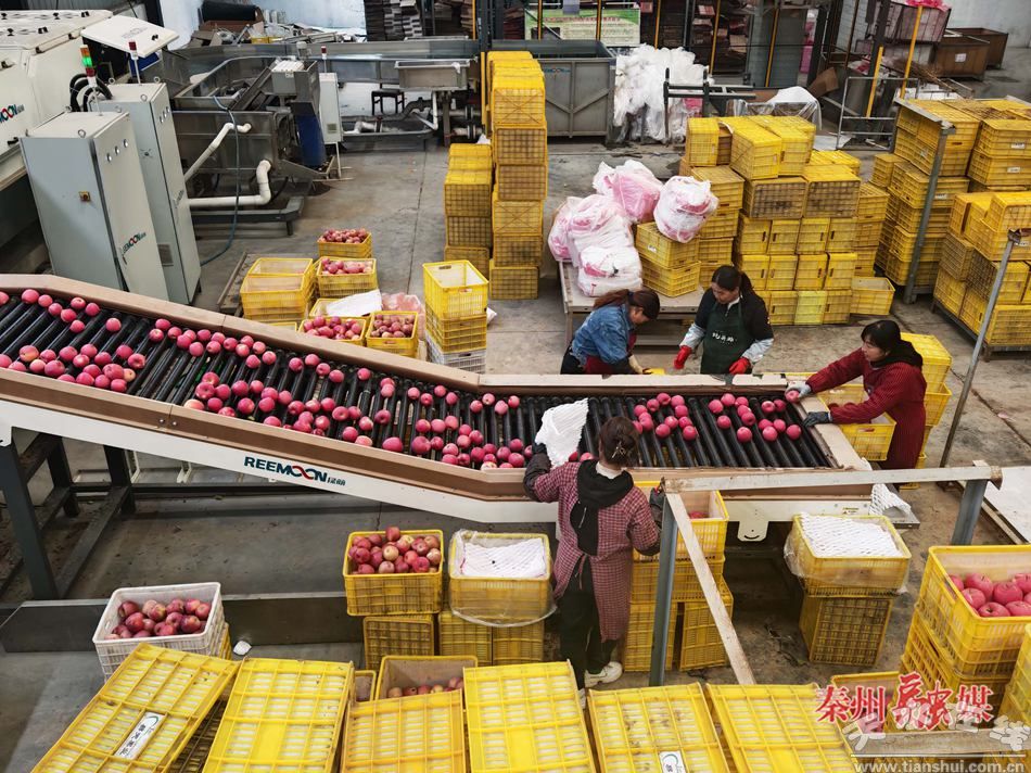 在天水易天果業(yè)蘋(píng)果智能分揀包裝車(chē)間,大大小小的蘋(píng)果,在機(jī)械化的“指揮”下,依次經(jīng)過(guò)清洗、烘干、分揀等程序后,進(jìn)入不同等次的包裝線(xiàn),工人們?cè)賹?duì)分揀后的蘋(píng)果進(jìn)行復(fù)檢、貼標(biāo),分裝在不同規(guī)格的包裝箱中。這些經(jīng)過(guò)精準(zhǔn)分選的蘋(píng)果,大小均勻,色澤鮮亮,既滿(mǎn)足了高端市場(chǎng)對(duì)精品果的需求,也為中端市場(chǎng)提供了品質(zhì)穩(wěn)定的產(chǎn)品。