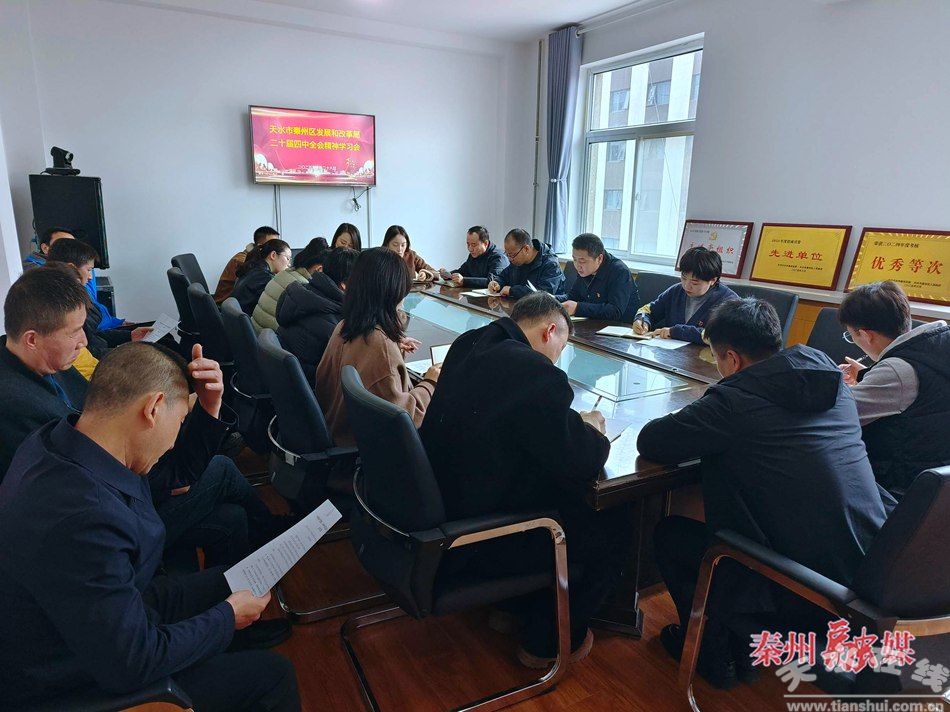 10月28日,秦州區(qū)發(fā)改局召開(kāi)會(huì)議集中學(xué)習(xí)了黨的二十屆四中全會(huì)精神,要求全體干部把學(xué)習(xí)貫徹好黨的二十屆四中全會(huì)精神作為當(dāng)前和今后一個(gè)時(shí)期的重大政治任務(wù),把學(xué)習(xí)貫徹全會(huì)精神同抓好當(dāng)前工作緊密結(jié)合起來(lái),切實(shí)把學(xué)習(xí)成效轉(zhuǎn)化為高質(zhì)量發(fā)展實(shí)效。