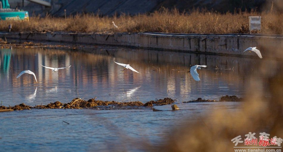夕陽(yáng)西下,倦鳥歸巢,候鳥的身影與岸邊的城市建筑相映成景。從昔日的河道治理到如今的生態(tài)廊道,越來(lái)越多的候鳥選擇在此棲息越冬,藉河風(fēng)情線的蝶變,正是近年秦州區(qū)生態(tài)文明建設(shè)持續(xù)向好的縮影。