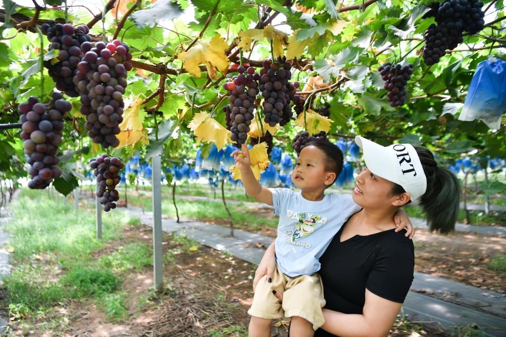 2022年8月19日,游客在位于陜西省西安市鄠邑區(qū)的一家種植養(yǎng)殖業(yè)專(zhuān)業(yè)合作社游覽。新華社記者張博文攝