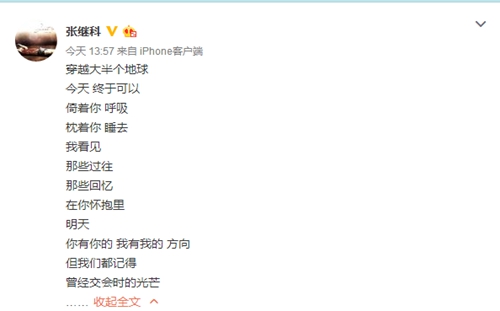 而回國后,張繼科也立即更新了微博,分享了自己與接機粉絲們的合照,并附上文藝小詩一首。