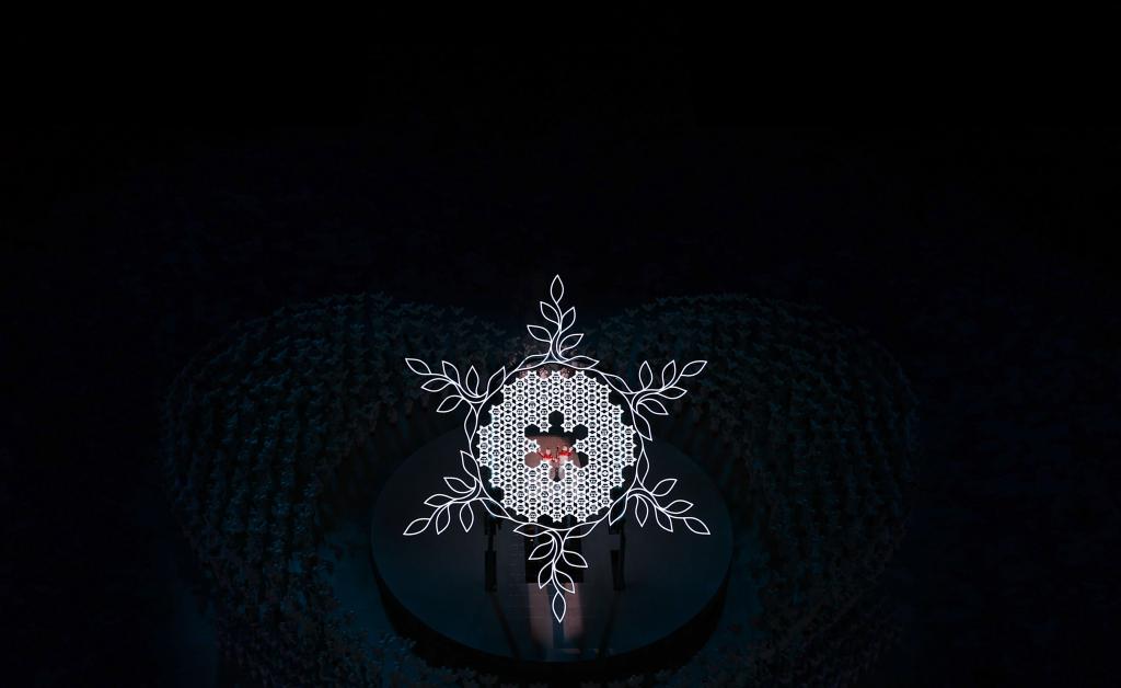 2月4日晚,第二十四屆冬季奧林匹克運動會開幕式在北京國家體育場舉行。圖為火炬手迪妮格爾·衣拉木江和趙嘉文準備將火炬嵌入“大雪花”中央。新華社記者陳益宸攝