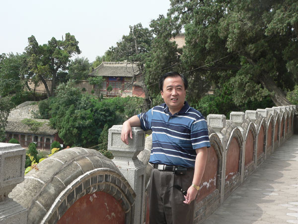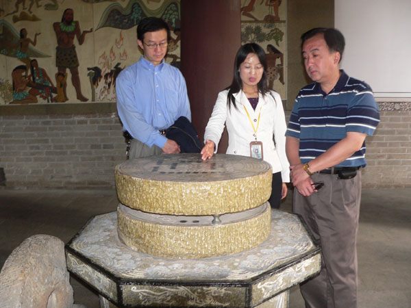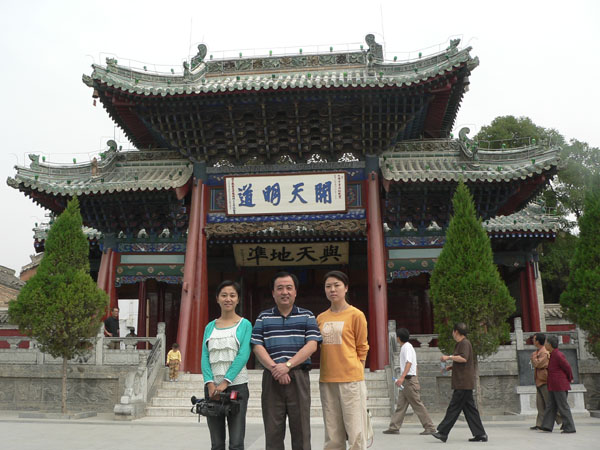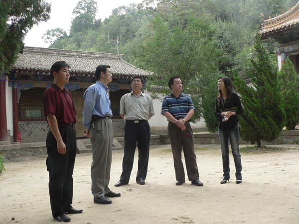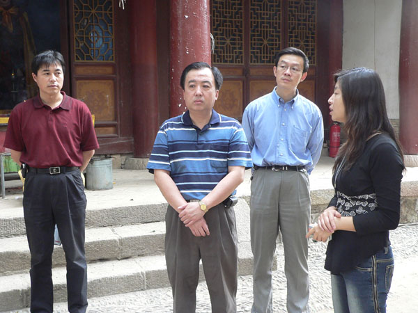 圖(中)為陳育明司長在省外辦龍凌處長和天水市外辦王元成主任的陪同下在伏羲廟參觀