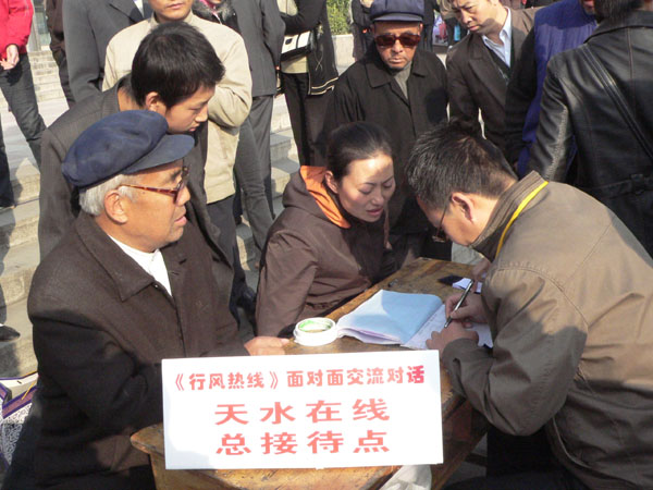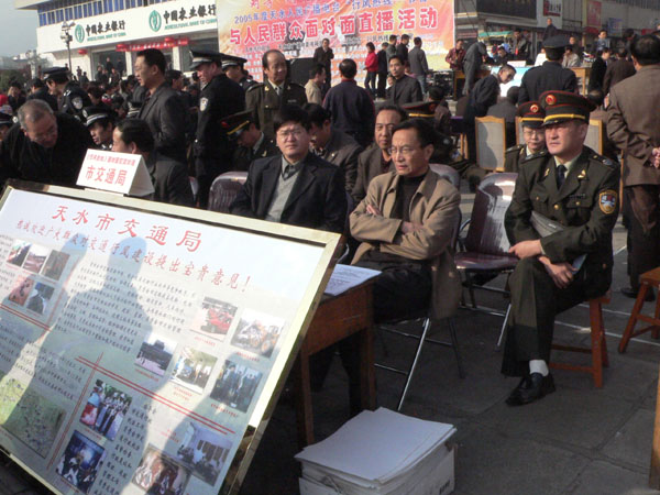 10月23日上午,天水人民廣播電臺《行風熱線》大型現(xiàn)場直播活動在市中心廣場舉行,本次活動由天水市糾風辦、天水市廣播電影電視局主辦。27個職能部門和11家熱點單位負責人走出直播間,來到廣場,本著“對等、對面、對話,交談、交流、交心”的精神,零距離與廣大群眾接觸見面,現(xiàn)場聽取大家對黨風、政風、行業(yè)作風的意見!缎酗L熱線》大型現(xiàn)場直播活動在我市和全省都是首次。