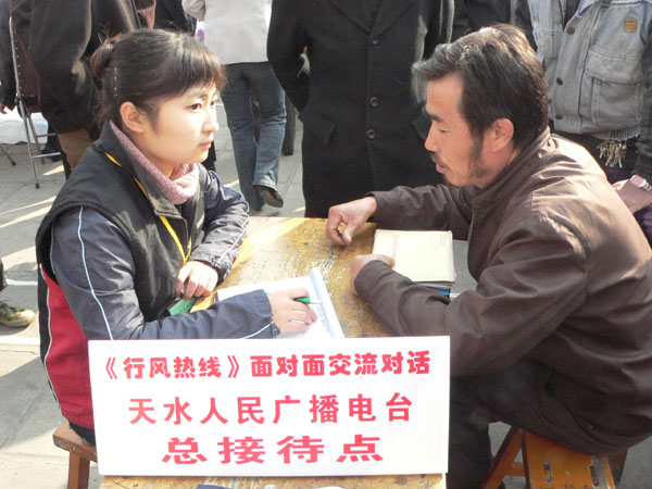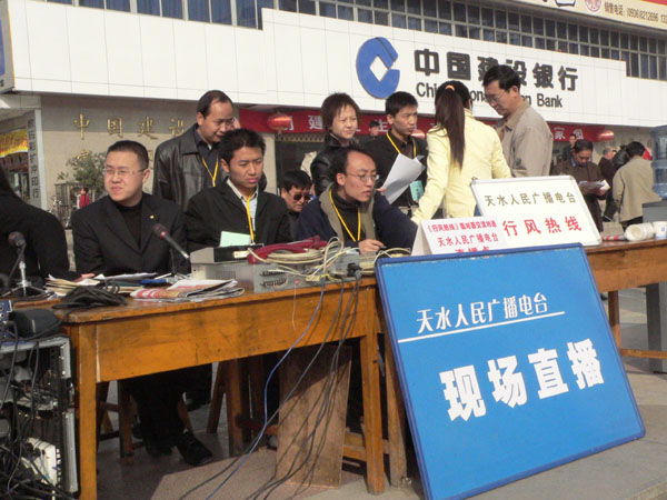 作為今年全市行風評議工作重要載體和主要形式的《行風熱線》節(jié)目,自2003年創(chuàng)辦以來,已播出了260多期,該欄目秉承“優(yōu)化經(jīng)濟發(fā)展環(huán)境,服務社會與群眾,加強輿論監(jiān)督,倡導行業(yè)新風”的宗旨和“正行風,樹形象,評是非,解難題”的目的,許多家與人民群眾生活密切相關(guān)的職能部門領(lǐng)導、企業(yè)事業(yè)單位負責人相繼走進天水人民廣播電臺直播間,通過“熱線”與群眾真誠對話,直播活動更使我們依法行政、行風評議等各項工作確立了公開、公平、公正的透明氛圍。