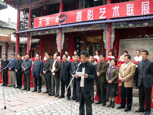 4月26日上午,天水“6人行”攝影藝術(shù)聯(lián)展在市群藝館開(kāi)幕。市領(lǐng)導(dǎo)杜松奇、孫周秦、韓岱成、張懷仁、鄧炎喜、郭奇若、陶元德等出席開(kāi)展儀式。 本次攝影展由省攝影家協(xié)會(huì)、天水廣播電視臺(tái)、市文化文物出版局聯(lián)合主辦。在為期7天的展覽中,將展出杜松奇、張憲潼、孫曉、常國(guó)宣、陳峰、豆芽6人不同風(fēng)格、各具特點(diǎn)的百余幅優(yōu)秀攝影作品。