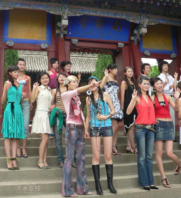 圖為6月26日第七屆CCTV超級模特大賽“金莎會杯”天水選拔賽暨2006伏羲文化旅游節(jié)禮儀模特大賽模特在南郭寺走秀。攝影:丁建太