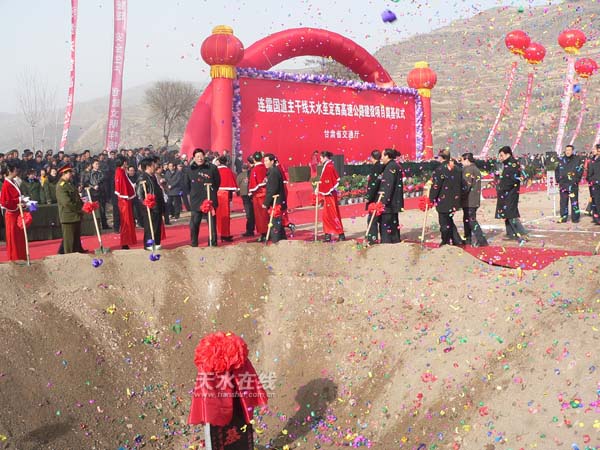 禮炮聲中,省委副書(shū)記、代省長(zhǎng)徐守盛宣布工程奠基。省委副書(shū)記韓忠信講話。蘭州軍區(qū)副司令員王乃勤參加了奠基儀式。奠基儀式由副省長(zhǎng)楊志明主持。