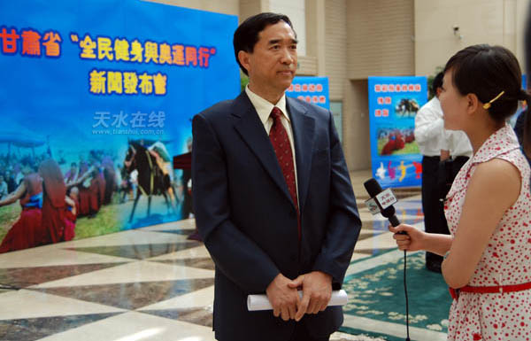 5月29日下午,剛剛參加完甘肅省“全民健身與奧運(yùn)同行”新聞發(fā)布會(huì)的國(guó)家體育總局群體司司長(zhǎng)盛志國(guó)在國(guó)家體育總局新聞發(fā)布會(huì)大廳,接受了本報(bào)及天水電視臺(tái)、天水在線的聯(lián)合采訪,盛志國(guó)司長(zhǎng)說,剛才在新聞發(fā)布會(huì)上我看到了咱們天水八十多歲的民間武術(shù)家的表演及非常獨(dú)特的藝術(shù)功底,由此可見,武術(shù)比賽在天水來講,是一個(gè)深得老百姓認(rèn)可和喜愛的項(xiàng)目,所以,把全國(guó)農(nóng)民武術(shù)大賽放在天水舉辦具有很深遠(yuǎn)的意義。