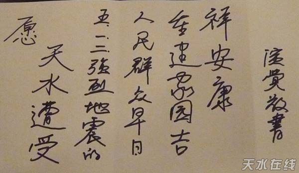 5月12日四川汶川發(fā)生的8.0級特大地震災(zāi)害,對四川、甘肅、陜西等多個省市人民群眾的生命財產(chǎn)造成了重大損失,為了幫助受災(zāi)群眾渡過難關(guān)、重建家園,天水市政府各駐外機構(gòu)負責(zé)人率先帶頭,組織廣大干部職工及天水籍人士慷慨解囊,用行動彰顯社會責(zé)任,用愛心傳遞博愛文明,積極捐款募捐、積極獻血,充分體現(xiàn)了中華民族“一方有難,八方支援”的精神風(fēng)貌。