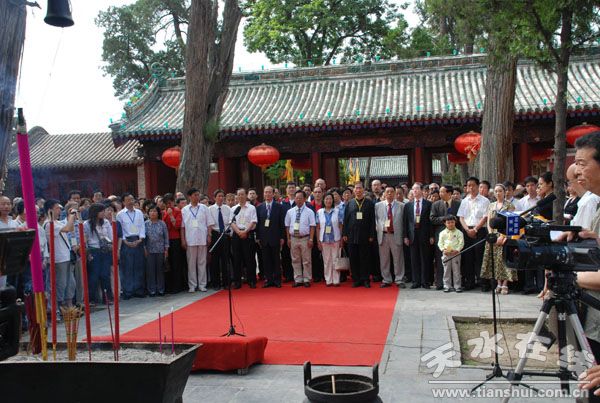 6月23日,“敬迎中華人文始祖伏羲女媧傳承中華文明”“迎圣祈福”儀式在伏羲廟舉行。原省人大常委會副主任、甘肅省伏羲文化研究會理事長程有清恭讀祭文,原全國政協(xié)常委、省政協(xié)副主席、中華伏羲文化研究會執(zhí)行會長周宜興主持儀式。市委常委、宣傳部長孫周秦、臺灣伏羲協(xié)會會長張安樂等為伏羲女媧圣像揭彩。儀式上宣讀了臺灣宋楚瑜、王金平的賀詞,朗誦了中華五福碑頌詞,各方代表敬獻(xiàn)了花籃。