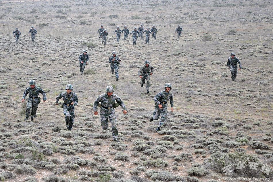 經(jīng)過半小時的崎嶇前行,我們在駐天水市蘭州軍區(qū)某鋼鐵紅軍師宣傳干事何曠陽的帶領下來到了蘭州軍區(qū)某鋼鐵紅軍師“黃河鐵騎團”炮兵營,這里的部隊已經(jīng)各就各位正在加緊訓練,有些部隊已經(jīng)拉出,有些還在營地周圍訓練,于是我們在營地周圍對戰(zhàn)士體能訓練進行了拍攝,并對其進行了詳細的采訪。