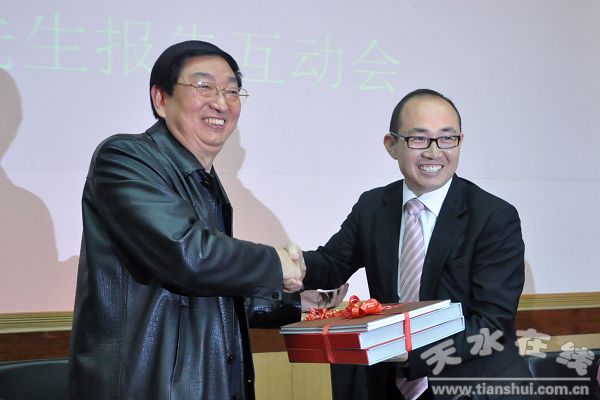 天水師范學(xué)院黨委書記杜松奇向潘石屹先生贈送紀(jì)念品