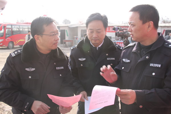 1月29日至31日,甘肅省公安廳交警總隊(duì)副總隊(duì)長(zhǎng)鐘山帶領(lǐng)第四春運(yùn)工作檢查組,在天水市公安局副局長(zhǎng)、交警支隊(duì)支隊(duì)長(zhǎng)霍秦生,副支隊(duì)長(zhǎng)桐向東、王思民等領(lǐng)導(dǎo)的陪同下,對(duì)天水交警支隊(duì)2010年春運(yùn)工作進(jìn)行了督導(dǎo)檢查。