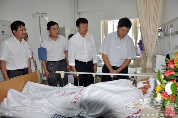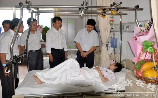“在大災(zāi)大難面前我們是一家人,要把這里當(dāng)成自己的家,安心養(yǎng)病。配合醫(yī)院的治療,希望你早日康復(fù)。”這是8月13日,由天水市委副書記張應(yīng)華,市委常委、組織部長楊繼軍率領(lǐng)機(jī)關(guān)工委、衛(wèi)生局,代表全市黨員干部在天水市第二人民醫(yī)院看望慰問在舟曲特大泥石流災(zāi)害中受傷后,轉(zhuǎn)移到天水市救治的病人時(shí),語重心長地說得一番寄托全市黨員干部深情的話語。